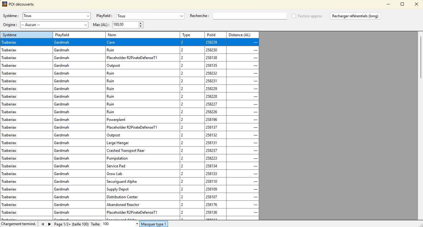 Écran des POI découverts